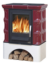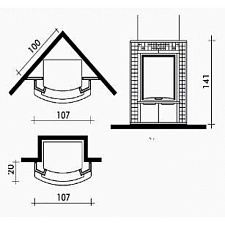 Модель относится к пристенным каминам деревенского дизайна, с характерными элементами этого стиля: Д-образной формой корпуса, каминной балке из массива дерева и высоким дымоходным колпаком.