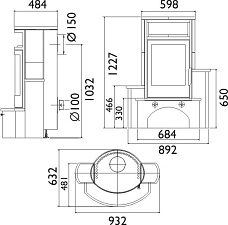 Пристенная печь-камин с духовкой. 3 тепловой класс.